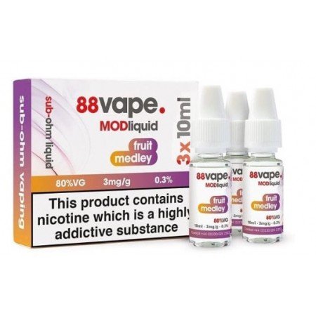 88 Vape Fruit Medley MODliquid combines a delightful mix of ripe, juicy fruits into a single, refreshing vape juice that delivers a smooth and satisfying experience with every puff. The Fruit Medley offers a well-balanced blend of tropical and berry notes, creating a fruity fusion that’s both sweet and tangy. Perfect for vapers who love variety, this multi-fruit flavor profile is ideal for an all-day vape, providing a burst of fruitiness that’s sure to please your taste buds. Made with premium ingredients and designed for MOD devices, 88 Vape Fruit Medley MODliquid ensures exceptional flavor and vapor production for a superior vaping experience.