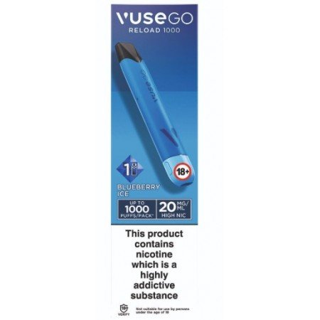 The Vuse Go Reload Pen in Blue – Blueberry Ice 20mg/ml offers a revitalising vaping experience. The luscious sweetness of ripe blueberries is combined with a refreshing menthol finish in this small, fashionable, rechargeable gadget. It delivers smooth 20mg/ml nicotine salt satisfaction with every puff. It uses Vuse Go Reload prefilled pods and is a great alternative to disposable vapes in the UK. It was designed with sustainability and convenience in mind.